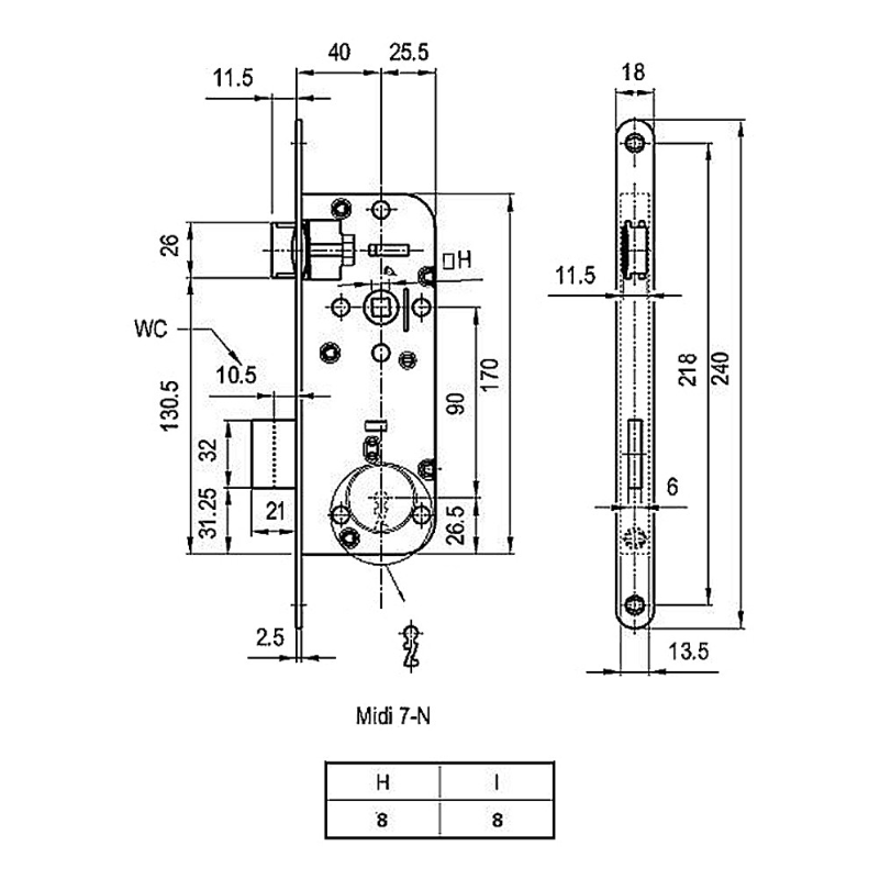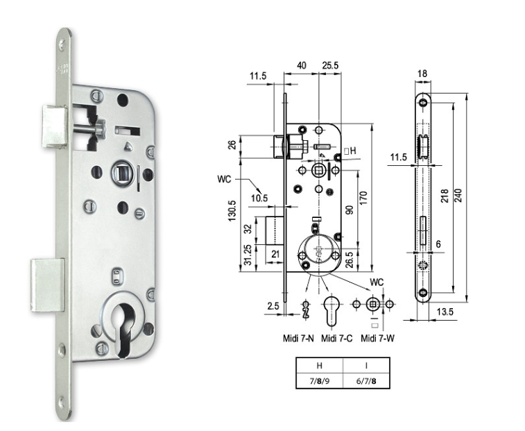 Midi-7 BB bevésőzár